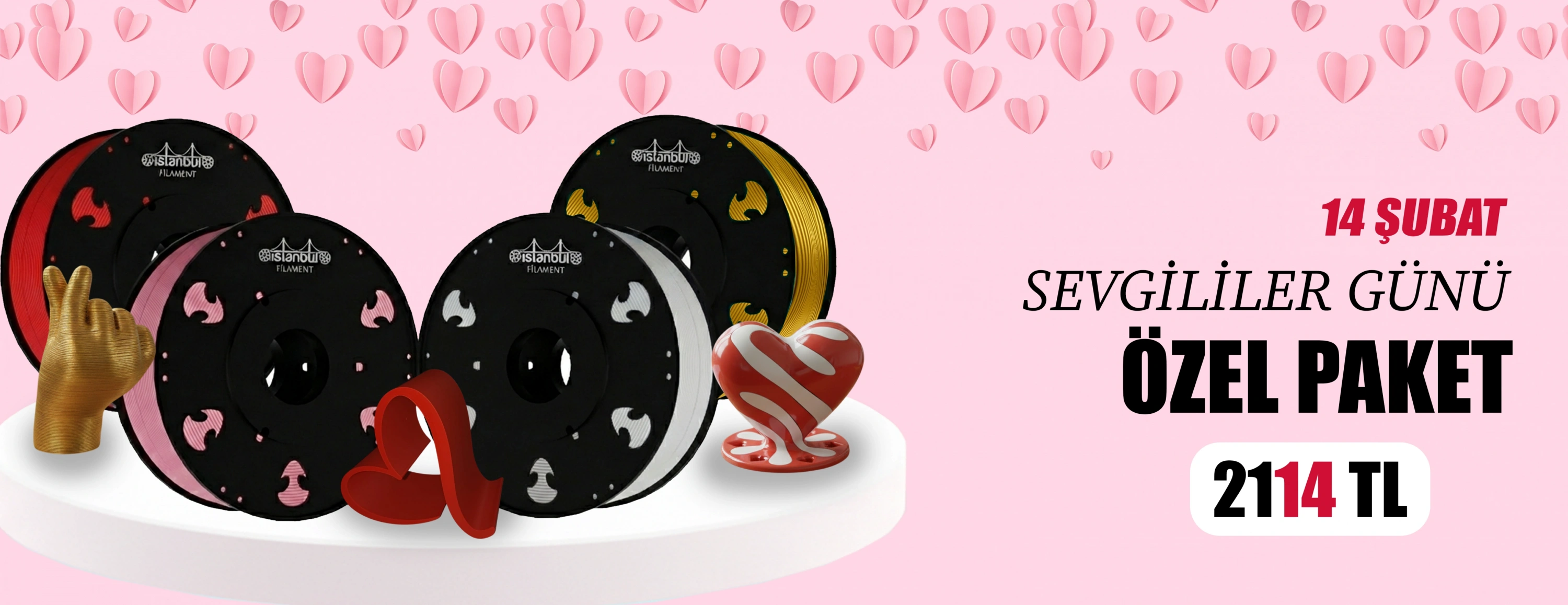 PLA + Sevgililer Günü Özel Paket (Silk Gold - Kırmızı - Beyaz - Pastel Pembe)